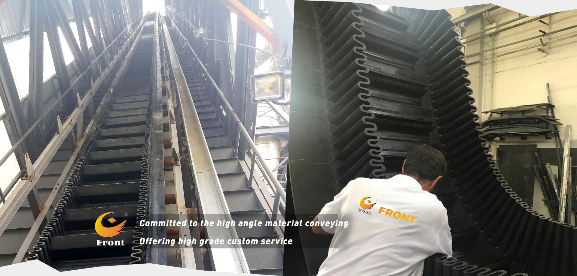 Corrugated Sidewall Conveyor Belt Corrugated sidewall conveyor belt is widely used in seaport ,metallurgy ,mining , power , coal ,casting ,cement ,and chemical industry. Sidewall belt can convey bulk material at a incline of 0°-90°,and granularity diameter up to 400mm. It is one of the most effective ways of elevating materials in a confined space , the economy is achieved by single belt operation ,wide range material can be handled ,less space requirement,no transfer point ,low maintenance and big capacity.Corrugated sidewall belt can be designed into a set of complete transportation system according to application.