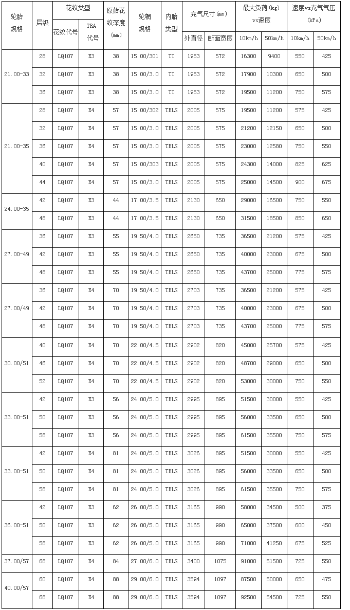 Suitable for the scraper and heavy dump trucks operation on harsh road condition such as mining areas ,tunnel, quarry and construction site etc, deep tread and wide riding area provide good cutting & wear resistance,improve ride properties on gravel road,the tires have long service life and is durable.