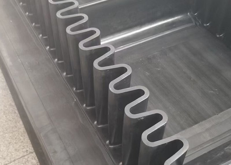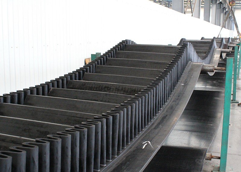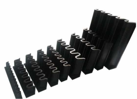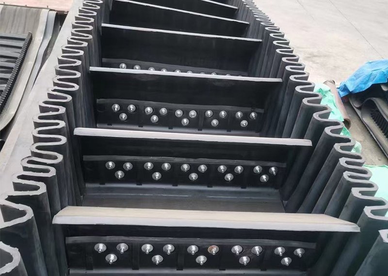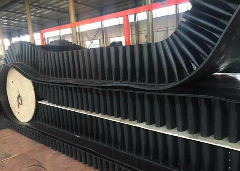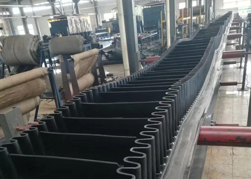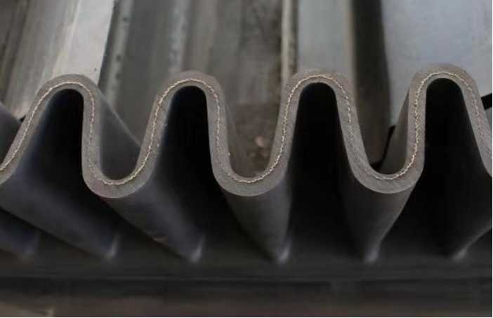 Corrugated sidewall conveyor belting is composed of three parts including base band, retaining band and diaphragm. The guard edge is used to prevent material from slipping and falling. For the convenience of bypassing the drum, the edge of the file is designed to be corrugated. The role of diaphragm is to support the material, in order to achieve large Angle conveying, using T TC type. The baffle and diaphragm are connected to the base band by a secondary vulcanization method with high bonding strength.