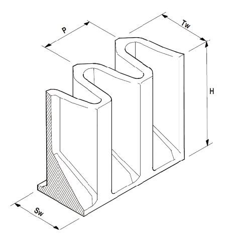 | Type | Sw(mm) | Tw(mm) | P(mm) | EST Weight(kg/m) |