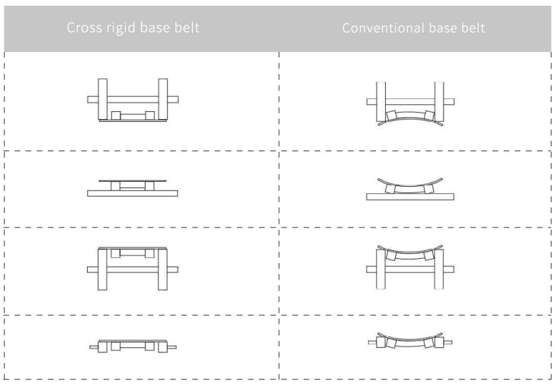 • XE+2 The cross rigid and tensioning plies are separate,in this case the belt has 2 cross-rigid polyester monofilament plies, application areas are medium to heavy.